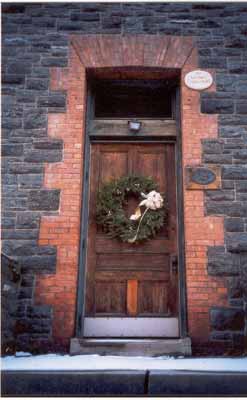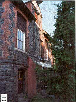 with a first floor of quarried stone, and a second story of brick that